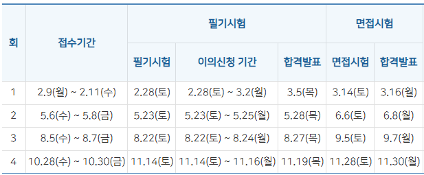 자세한 사항(상시시험 면접 및 필기)은 한국해양수산연구원 국가자격시험 사이트 연간시험일정표에서 확인하시길 바랍니다.