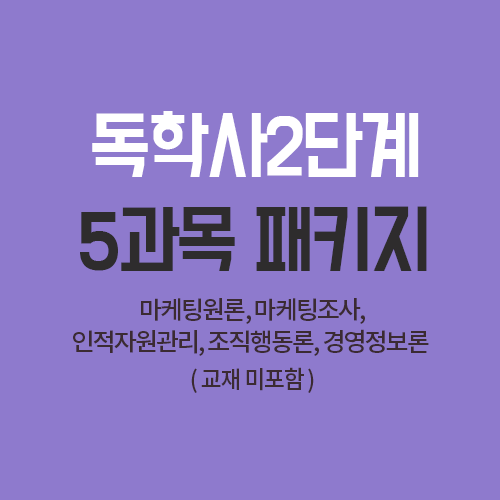 수강과목 | 2단계 5과목 패키지 : 마케팅원론, 마케팅조사, 조직행동론, 인적자원관리, 경영정보론 (다른 과목으로 변경 가능합니다) |